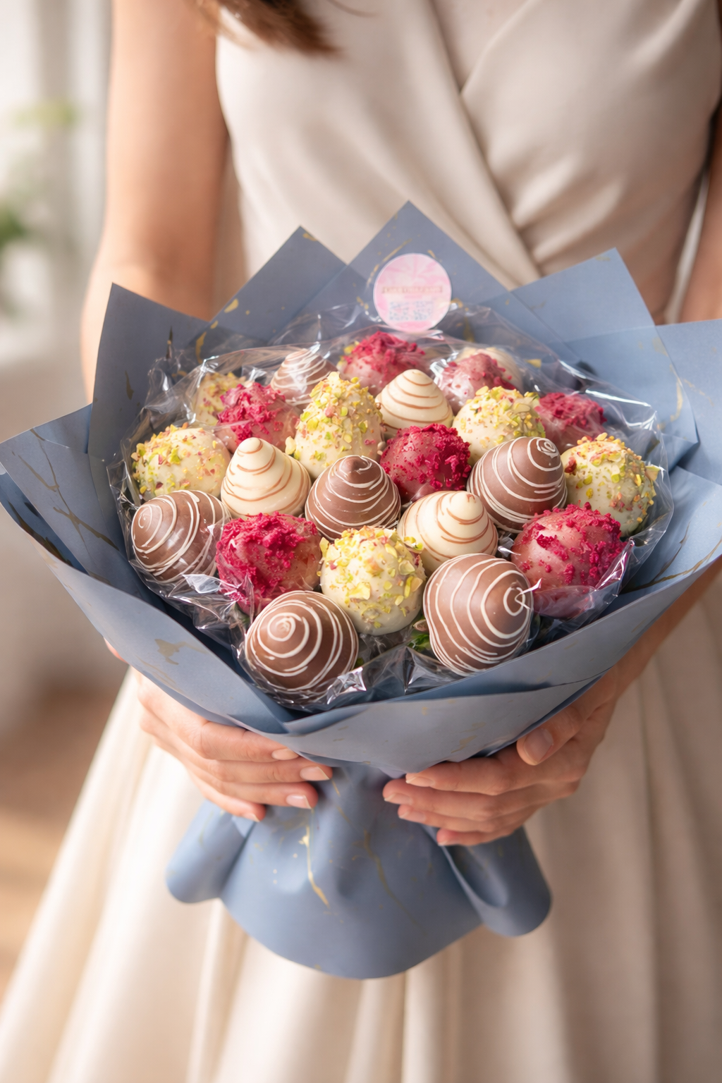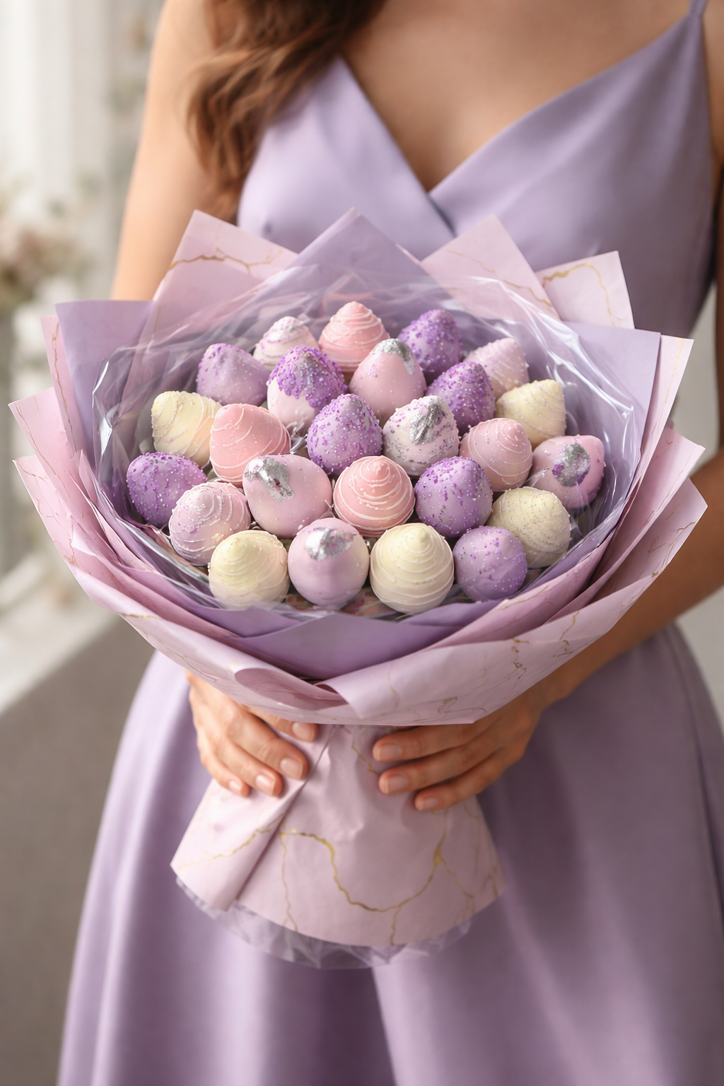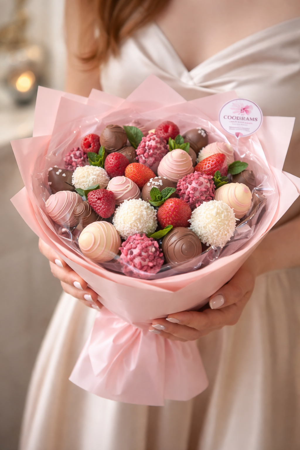 ŠVIEŽIOS, sultingos braškės, aplietos tikru BELGIŠKU ŠOKOLADU, papuoštos valgomomis dekoracijomis – visa tai supakuota kaip tikra gėlių puokštė, tik daug skanesnė. S dydis (21 vnt.) M dydis (27 vnt.) L dydis (35vnt.)