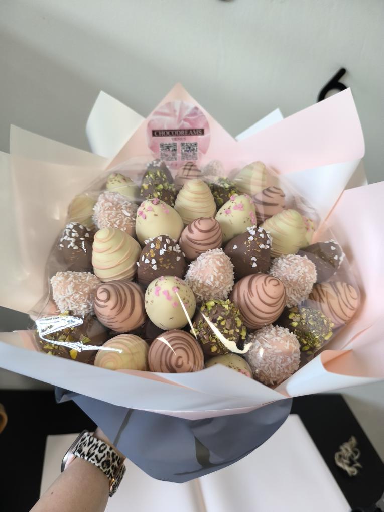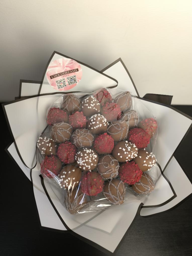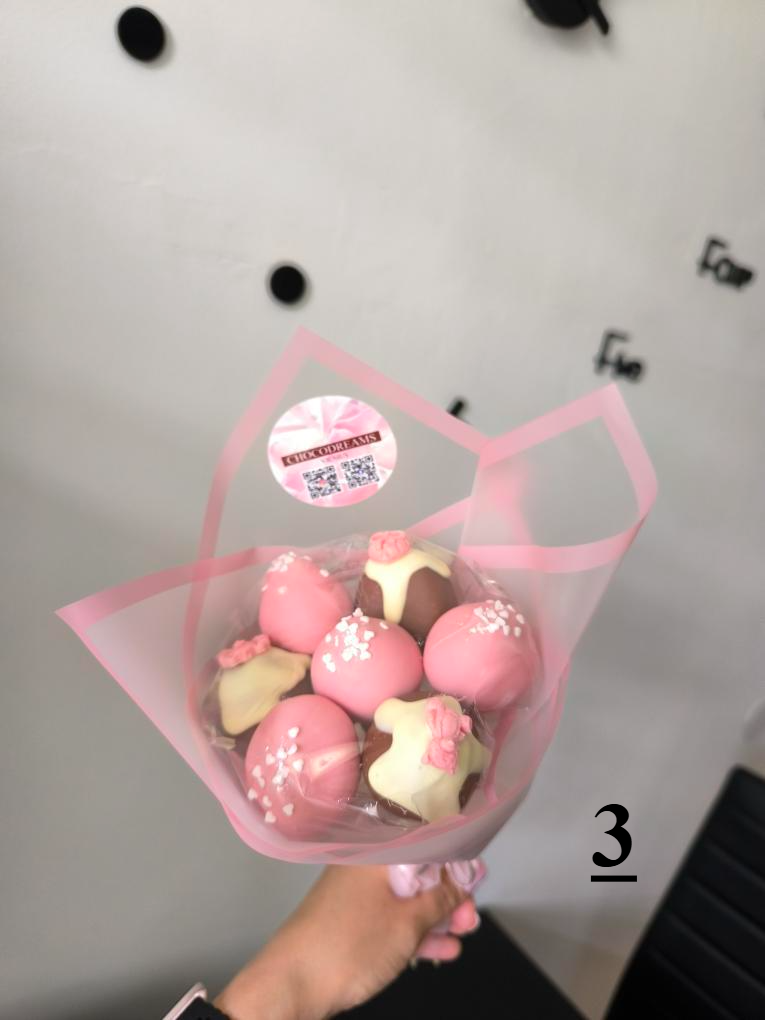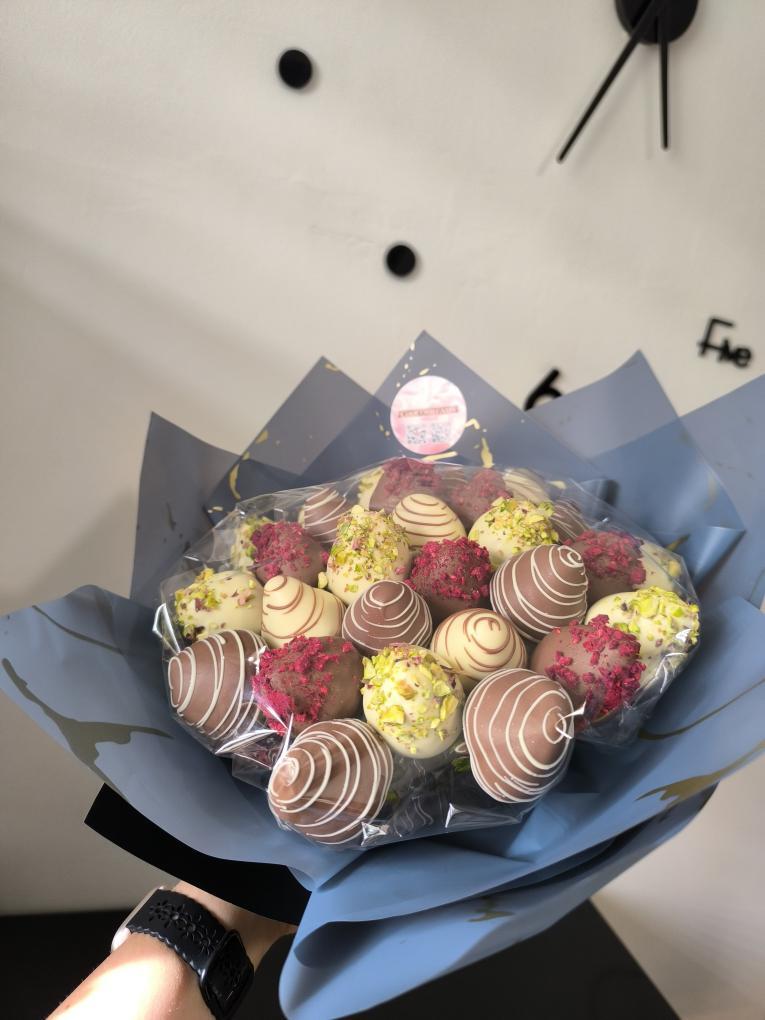ŠVIEŽIOS, sultingos braškės, aplietos tikru BELGIŠKU ŠOKOLADU, papuoštos valgomomis dekoracijomis – visa tai supakuota kaip tikra gėlių puokštė, tik daug skanesnė. S dydis (21 vnt.) M dydis (27 vnt.) L dydis (35vnt.)